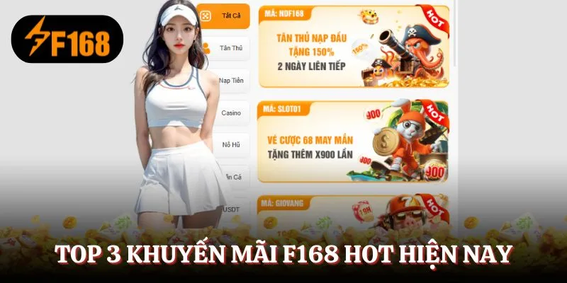Top 3 khuyến mãi F168 hot hiện nay